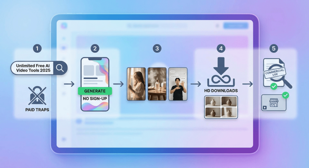 Step 1: Search for “Unlimited Free AI Video Tools 2025” (Avoid Paid Traps)