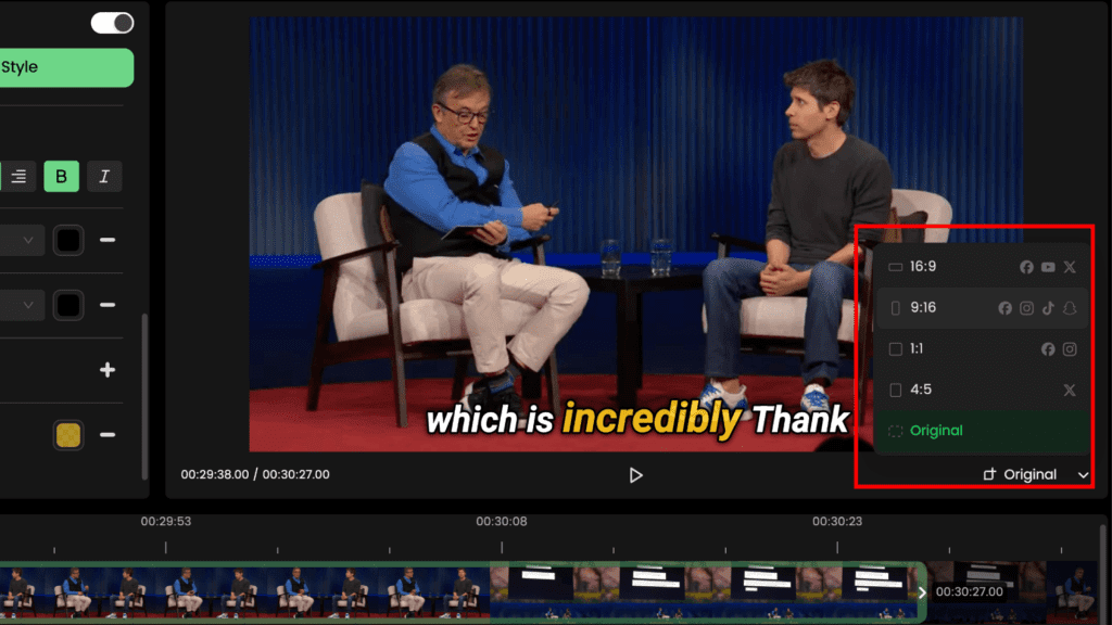 Step 2: Selecting the right aspect ratio for TikTok, Reels, and YouTube