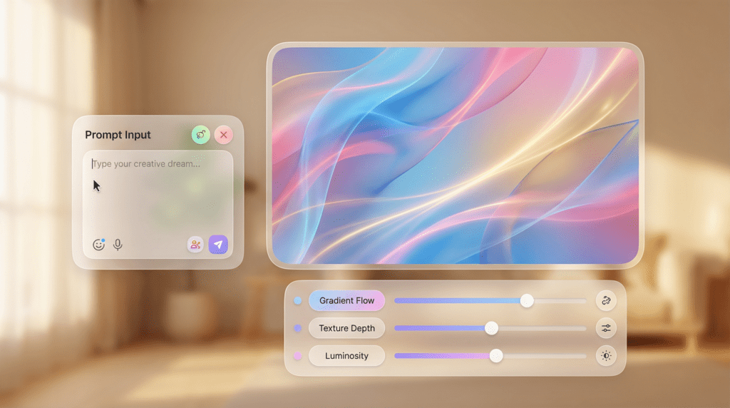 From what I’ve seen in model galleries and my own tests, AI is surprisingly sensitive to tone words, “hushed,” “bold,” “luminous.” These cues shape lighting softness, edge clarity, and contrast. The mood arrives first: the forms follow. That’s why AI abstract art matters: it lets visual emotion lead without getting tangled in representation.